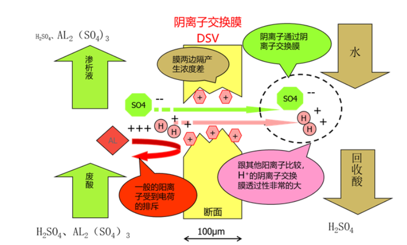 擴散滲析是由AC駕旭硝子開發(fā)的離子交換膜工藝,可以從金屬表面處理工藝中所排出的含金屬鹽的廢酸中分離和回收游離酸,被回收的酸通過表面處理工藝等被再利用,可以提高酸的使用效率。擴散滲析以濃度差為驅(qū)動力來促使離子移動,不需要直流電。妳因此,不僅運行成本低,而且裝置簡單,易于日常操作管理。其原理為通過隔板對...